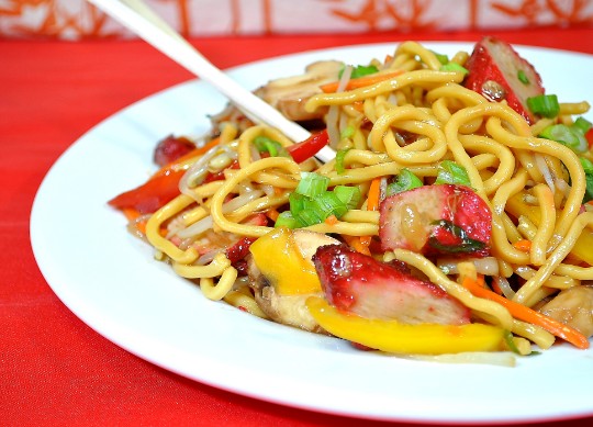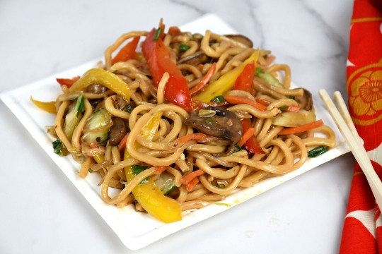 This bright and colorful salad will be sure to please your taste buds and your guests! These tofu nuggets are flash fried then tossed in a sweet and savory teriyaki sauce with carrots, snow peas and peppers.
